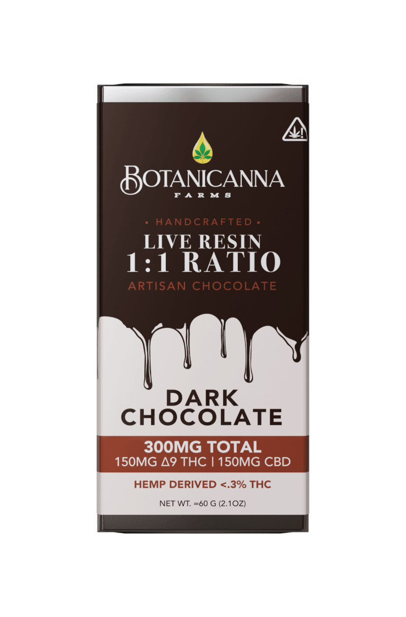 300mg D9 THC & CBD per bar. 10mg D9 THC & CBD per square. 15 squares per bar.