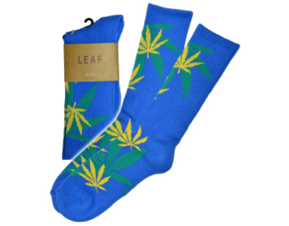 Unisex Bright Blue/Green Leaf Socks. One size fits most.